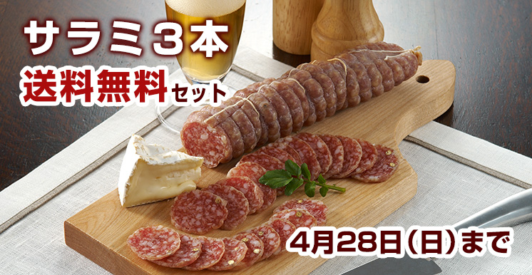 「期間限定販売 “サラミ 3本 送料無料セット”」は2019年4月28日(日)に終了致しました。