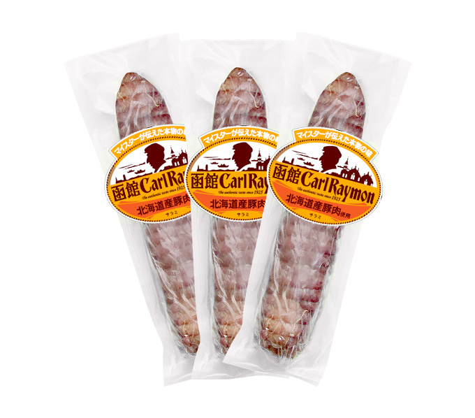 - 以前、友人から函館土産と言われ、カールレイモンさんのサラミをもらいました。一口食べてすぐ気に入りました。何日かかけて食べましたが、時間とともにうまみが増すようなかんじがありました。それでカールレイモンさんのサラミのファンになりました。あちこちでいろんなサラミを食べますが、カールレイモンさんのサラミが一番好きです。そもそも私はニンニクとコショウが好きなので、味も好みですし、肉と油に臭みがないのでついつい食べ過ぎてしまうくらいです。どうしてこんなに美味しいのか調べたら、手間暇かけて、材料も吟味されていて、心がこもっているからなんだなぁ・・・と分かりました。他の商品もチャンスをみて購入したいと思います。これからもカールレイモンさんの心を忘れず、体にいいシャルキュトリーを作り続けて下さい。